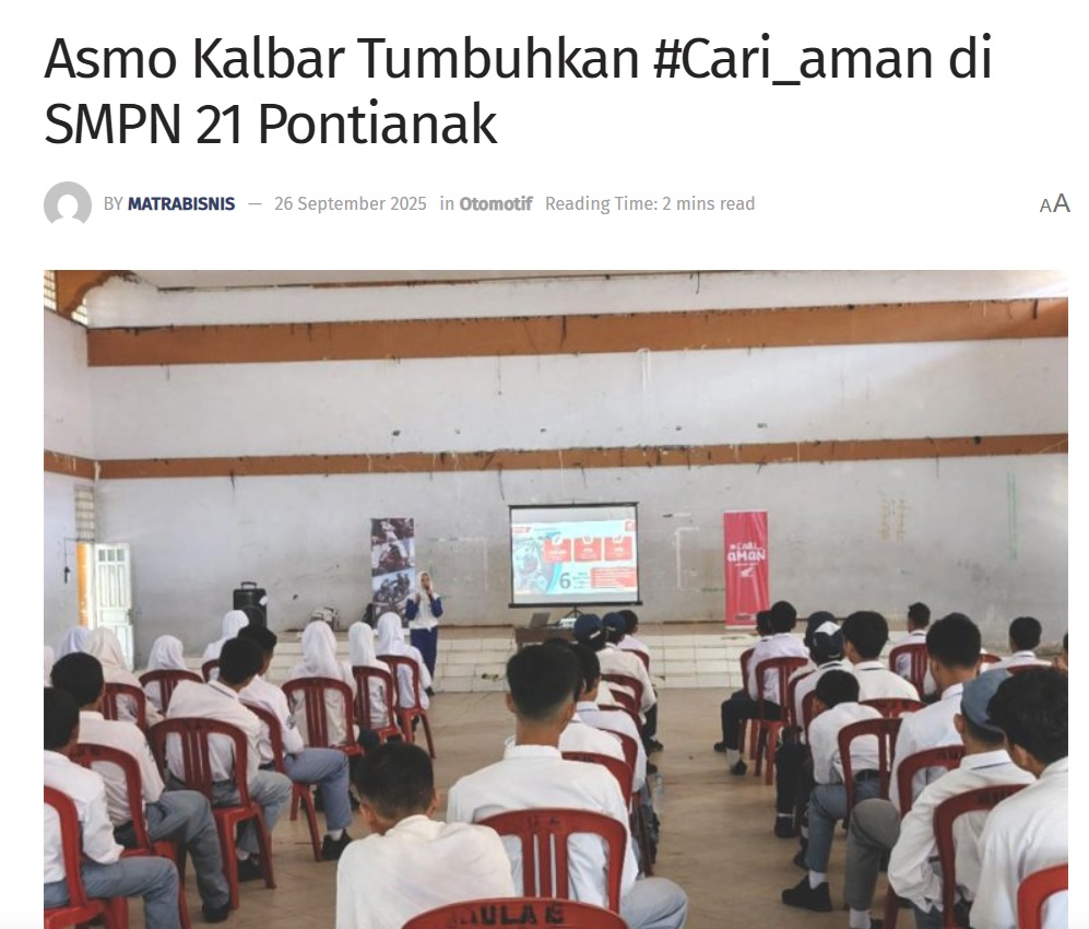 Asmo Kalbar Tumbuhkan #Cari_aman di SMPN 21 Pontianak by Sri Yuliantiningsih 26 September 2025 in Silahkan kunjungi https://matrabisnis.id/2025/09/26/asmo-kalbar-tumbuhkan-cari_aman-di-smpn-21-pontianak/. You Might Like Regional Public Launching New ADV160 The SUV Pride Grand Launching New PCX 160 Truly Exceptional! Tetap hati-hati ya bro sist berkendara saat hujan.