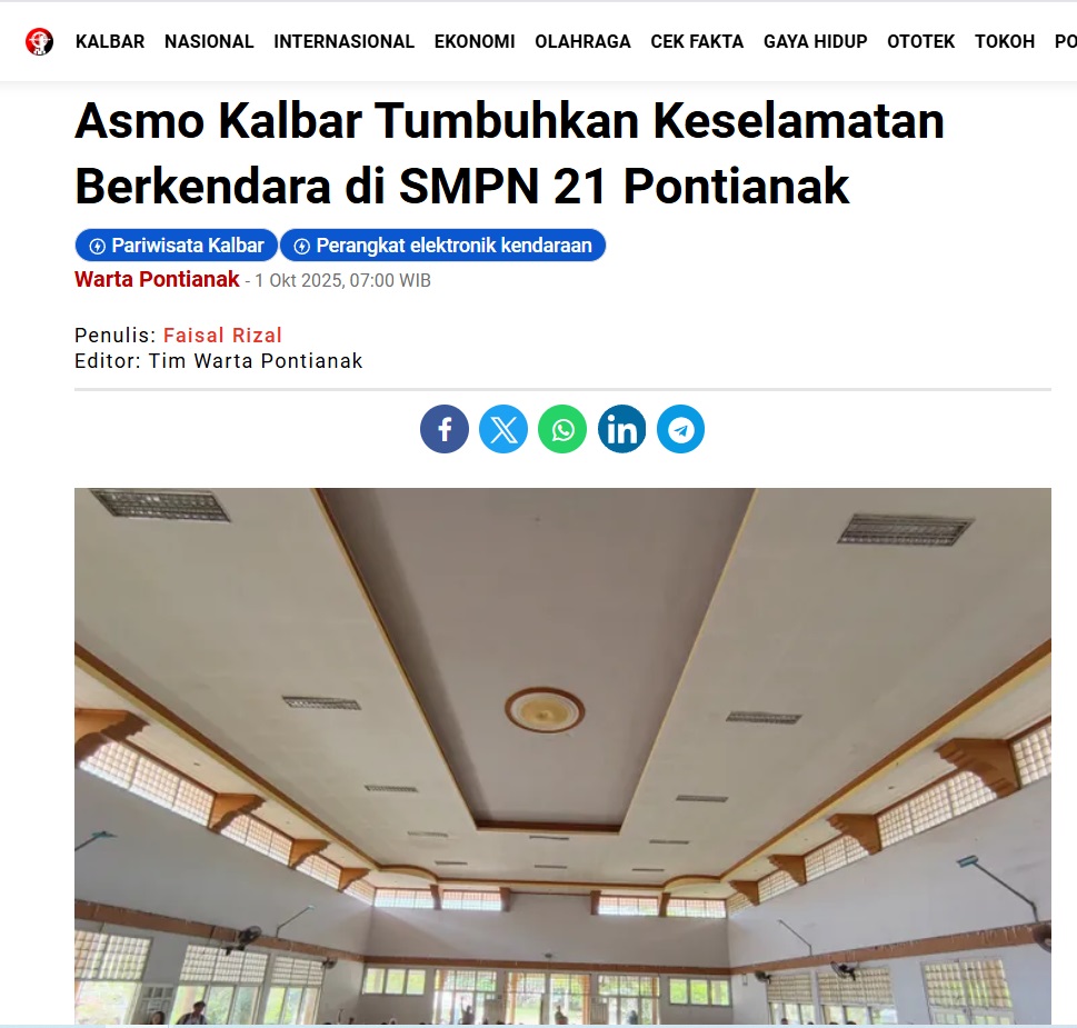 Asmo Kalbar Tumbuhkan Keselamatan Berkendara di SMPN 21 Pontianak by Faisal Rizal 2 Oktober 2025 in Silahkan kunjungi https://wartapontianak.pikiran-rakyat.com/gaya-hidup/pr-1179685993/asmo-kalbar-tumbuhkan-keselamatan-berkendara-di-smpn-21-pontianak. You Might Like Regional Public Launching New ADV160 The SUV Pride Grand Launching New PCX 160 Truly Exceptional! Tetap hati-hati ya bro sist berkendara saat hujan.