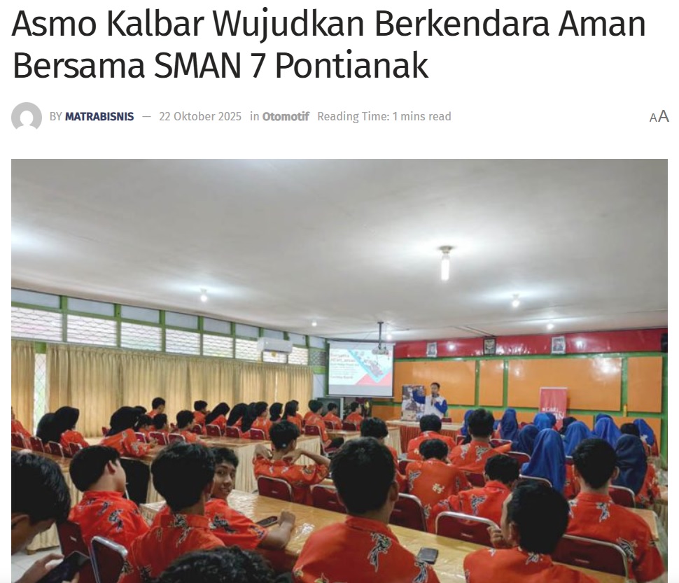 Asmo Kalbar Wujudkan Berkendara Aman Bersama SMAN 7 Pontianak by Sri Yuliantiningsih 22 Oktober 2025 in Silahkan kunjungi https://matrabisnis.id/2025/10/22/asmo-kalbar-wujudkan-berkendara-aman-bersama-sman-7-pontianak/. You Might Like Regional Public Launching New ADV160 The SUV Pride Grand Launching New PCX 160 Truly Exceptional! Tetap hati-hati ya bro sist berkendara saat hujan.