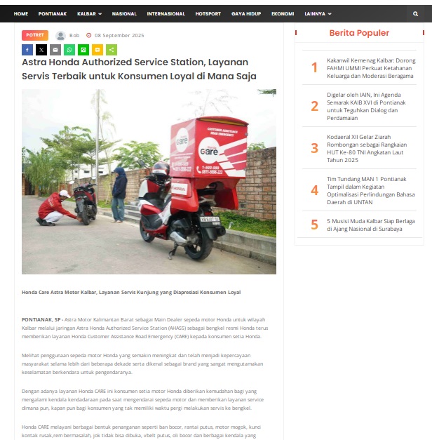 Astra Honda Authorized Service Station, Layanan Servis Terbaik untuk Konsumen Loyal di Mana Saja by masmul 8 September 2025 in Silahkan kunjungi https://www.suarapemredkalbar.com/read/potret/08092025/astra-honda-authorized-service-station-layanan-servis-terbaik-untuk-konsumen-loyal-di-mana-saja. You Might Like Regional Public Launching New ADV160 The SUV Pride Grand Launching New PCX 160 Truly Exceptional! Tetap hati-hati ya bro sist berkendara saat hujan.