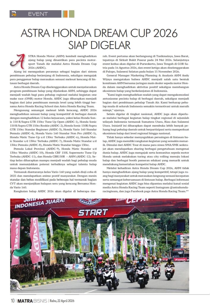 ASTRA HONDA DREAM CUP 2026SIAP DIGELAR by Sri Yuliantiningsih 22 April 2026 in Silahkan buka . You Might Like Regional Public Launching New ADV160 The SUV Pride Grand Launching New PCX 160 Truly Exceptional! Tetap hati-hati ya bro sist berkendara saat hujan.