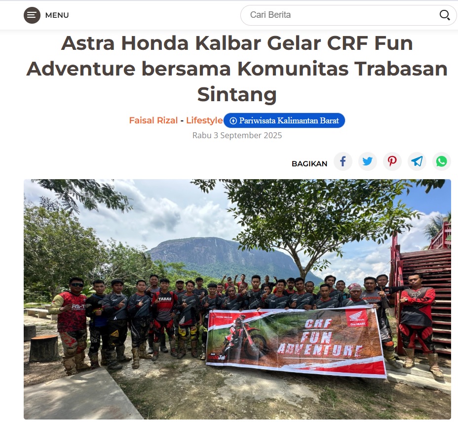 Astra Honda Kalbar Gelar CRF Fun Adventure bersama Komunitas Trabasan Sintang by Dodi Dodi 3 September 2025 in Silahkan kunjungi https://harianberkat.com/2025/09/03/astra-honda-kalbar-gelar-crf-fun-adventure-bersama-komunitas-trabasan-sintang/. You Might Like Regional Public Launching New ADV160 The SUV Pride Grand Launching New PCX 160 Truly Exceptional! Tetap hati-hati ya bro sist berkendara saat hujan.
