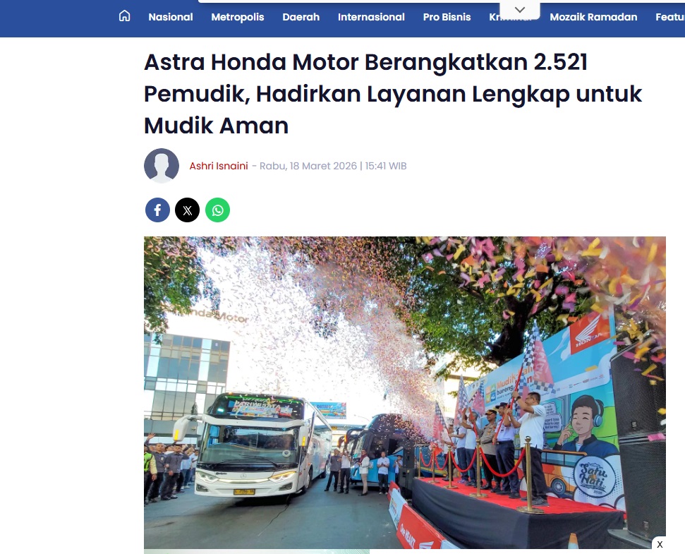 Astra Honda Motor Berangkatkan 2.521 Pemudik, Hadirkan Layanan Lengkap untuk Mudik Aman by Aristono Edi Kiswantoro 18 Maret 2026 in Silahkan kunjungi https://pontianakpost.jawapos.com/otomotif/1467316237/astra-honda-motor-berangkatkan-2521-pemudik-hadirkan-layanan-lengkap-untuk-mudik-aman. You Might Like Regional Public Launching New ADV160 The SUV Pride Grand Launching New PCX 160 Truly Exceptional! Tetap hati-hati ya bro sist berkendara saat hujan.