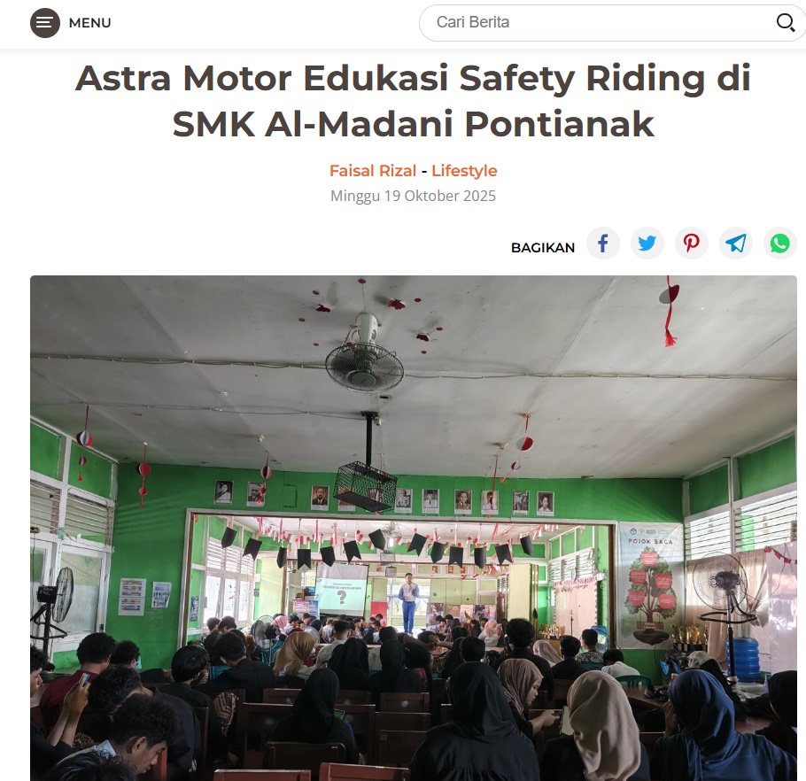 Astra Motor Edukasi Safety Riding di SMK Al-Madani Pontianak by Dodi Dodi 19 Oktober 2025 in Silahkan kunjungi https://harianberkat.com/2025/10/19/asmo-kalbar-gelar-safety-riding-di-smk-al-madani-pontianak/. You Might Like Regional Public Launching New ADV160 The SUV Pride Grand Launching New PCX 160 Truly Exceptional! Tetap hati-hati ya bro sist berkendara saat hujan.