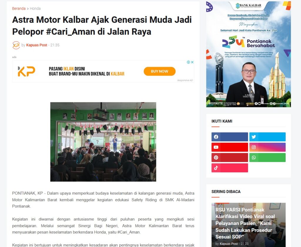 Astra Motor Kalbar Ajak Generasi Muda Jadi Pelopor #Cari_Aman di Jalan Raya by Muhammad Arif 28 Oktober 2025 in Silahkan kunjungi https://www.kapuaspost.web.id/2025/10/astra-motor-kalbar-ajak-generasi-muda.html. Tags: astra Astra Motor kalbar Astra Motor Pontianak astramotor honda kalbar pontianak sepeda motor You Might Like Regional Public Launching New ADV160 The SUV Pride Grand Launching New PCX 160 Truly Exceptional! Tetap hati-hati ya bro sist berkendara saat hujan.