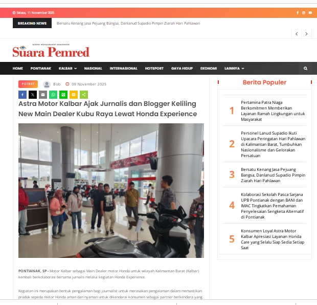 Astra Motor Kalbar Ajak Jurnalis dan Blogger Keliling New Main Dealer Kubu Raya Lewat Honda Experience by masmul 9 November 2025 in Silahkan kunjungi https://www.suarapemredkalbar.com/read/potret/09112025/astra-motor-kalbar-ajak-jurnalis-dan-blogger-keliling-new-main-dealer-kubu-raya-lewat-honda-experience-1. You Might Like Regional Public Launching New ADV160 The SUV Pride Grand Launching New PCX 160 Truly Exceptional! Tetap hati-hati ya bro sist berkendara saat hujan.
