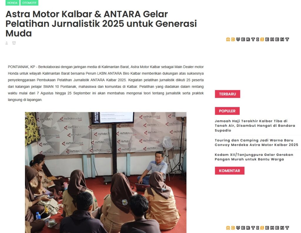 Astra Motor Kalbar & ANTARA Gelar Pelatihan Jurnalistik 2025 untuk Generasi Muda