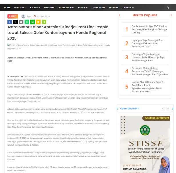Astra Motor Kalbar Apresiasi Kinerja Front Line People Lewat Sukses Gelar Kontes Layanan Honda Regional 2025 by masmul 31 Mei 2025 in Silahkan kunjungi https://www.suarapemredkalbar.com/read/potret/31052025/astra-motor-kalbar-apresiasi-kinerja-front-line-people-lewat-sukses-gelar-kontes-layanan-honda-regional-2025. You Might Like Regional Public Launching New ADV160 The SUV Pride Grand Launching New PCX 160 Truly Exceptional! Tetap hati-hati ya bro sist berkendara saat hujan.