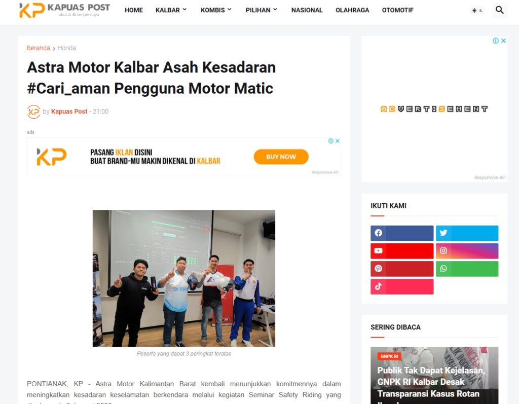 Astra Motor Kalbar Asah Kesadaran #Cari_aman Pengguna Motor Matic