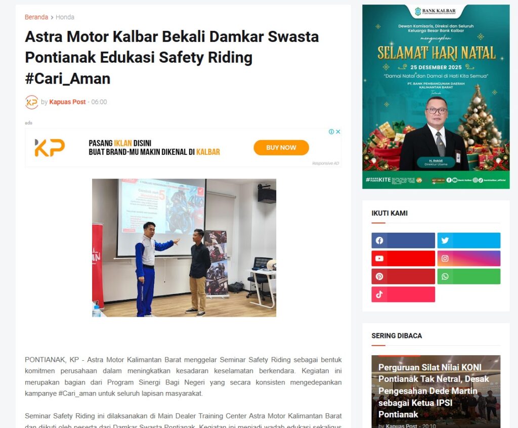 Astra Motor Kalbar Bekali Damkar Swasta Pontianak Edukasi Safety Riding #Cari_Aman by Muhammad Arif 28 Desember 2025 in Silahkan kunjungi https://www.kapuaspost.web.id/2025/12/astra-motor-kalbar-bekali-damkar-swasta.html. Tags: astra Astra Motor kalbar Astra Motor Pontianak astramotor honda kalbar pontianak sepeda motor You Might Like Regional Public Launching New ADV160 The SUV Pride Grand Launching New PCX 160 Truly Exceptional! Tetap hati-hati ya bro sist berkendara saat hujan.