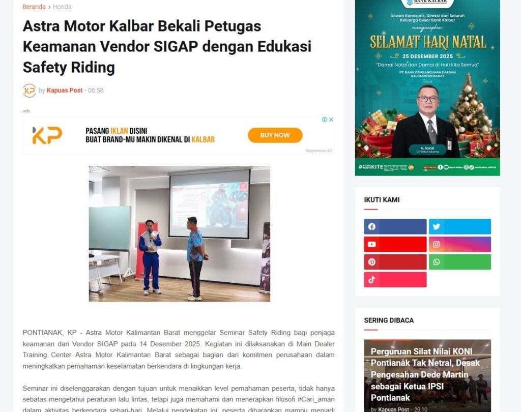 Astra Motor Kalbar Bekali Petugas Keamanan Vendor SIGAP dengan Edukasi Safety Riding