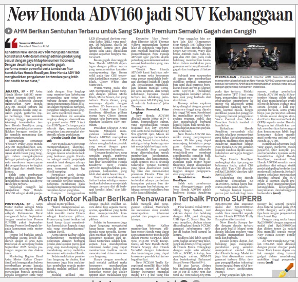 Astra Motor Kalbar Berikan Penawaran Tebraik Lewat Promo SUPERB by masmul 15 September 2025 in Silahkan buka . You Might Like Regional Public Launching New ADV160 The SUV Pride Grand Launching New PCX 160 Truly Exceptional! Tetap hati-hati ya bro sist berkendara saat hujan.