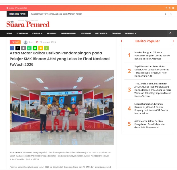 Astra Motor Kalbar Berikan Pendampingan pada Pelajar SMK Binaan AHM yang Lolos ke Final Nasional FeVosh 2026 by masmul 21 Januari 2026 in Silahkan kunjungi https://www.suarapemredkalbar.com/read/potret/21012026/astra-motor-kalbar-berikan-pendampingan-pada-pelajar-smk-binaan-ahm-yang-lolos-ke-final-nasional-fevosh-2026. You Might Like Regional Public Launching New ADV160 The SUV Pride Grand Launching New PCX 160 Truly Exceptional! Tetap hati-hati ya bro sist berkendara saat hujan.