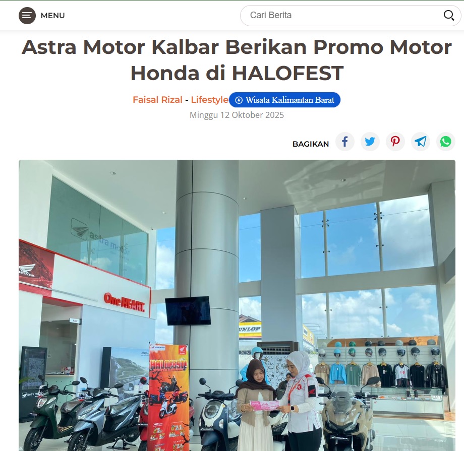 Astra Motor Kalbar Berikan Promo Motor Honda di HALOFEST by Dodi Dodi 12 Oktober 2025 in Silahkan kunjungi https://harianberkat.com/2025/10/12/astra-motor-kalbar-berikan-promo-motor-honda-di-halofest/. You Might Like Regional Public Launching New ADV160 The SUV Pride Grand Launching New PCX 160 Truly Exceptional! Tetap hati-hati ya bro sist berkendara saat hujan.