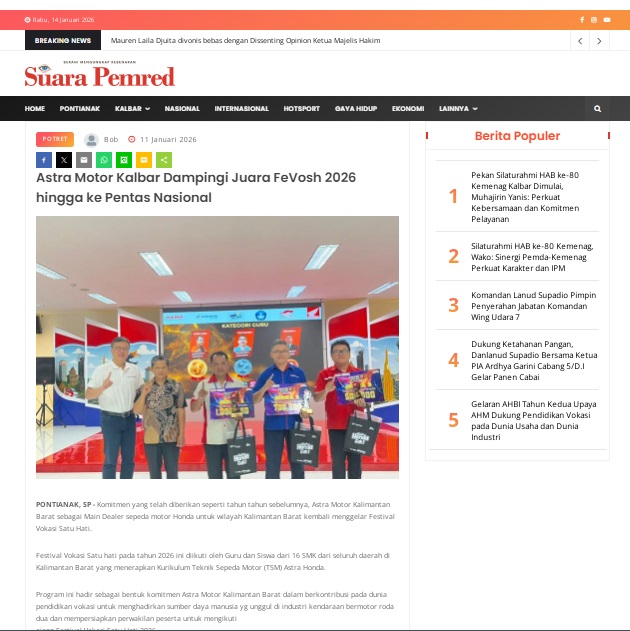 Astra Motor Kalbar Dampingi Juara FeVosh 2026 hingga ke Pentas Nasional Photo of Astra Motor Kalbar Dampingi Juara FeVosh 2026 hingga ke Pentas Nasional by masmul 11 Januari 2026 in Silahkan kunjungi https://www.suarapemredkalbar.com/read/potret/11012026/astra-motor-kalbar-dampingi-juara-fevosh-2026-hingga-ke-pentas-nasional. You Might Like Regional Public Launching New ADV160 The SUV Pride Grand Launching New PCX 160 Truly Exceptional! Tetap hati-hati ya bro sist berkendara saat hujan.