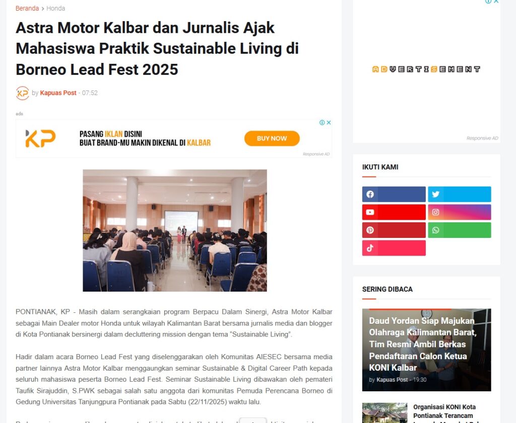 Astra Motor Kalbar dan Jurnalis Ajak Mahasiswa Praktik Sustainable Living di Borneo Lead Fest 2025 by Muhammad Arif 5 Desember 2025 in Silahkan kunjungi https://www.kapuaspost.web.id/2025/12/astra-motor-kalbar-dan-jurnalis-ajak.html. Tags: astra Astra Motor kalbar Astra Motor Pontianak astramotor honda kalbar pontianak sepeda motor You Might Like Regional Public Launching New ADV160 The SUV Pride Grand Launching New PCX 160 Truly Exceptional! Tetap hati-hati ya bro sist berkendara saat hujan.