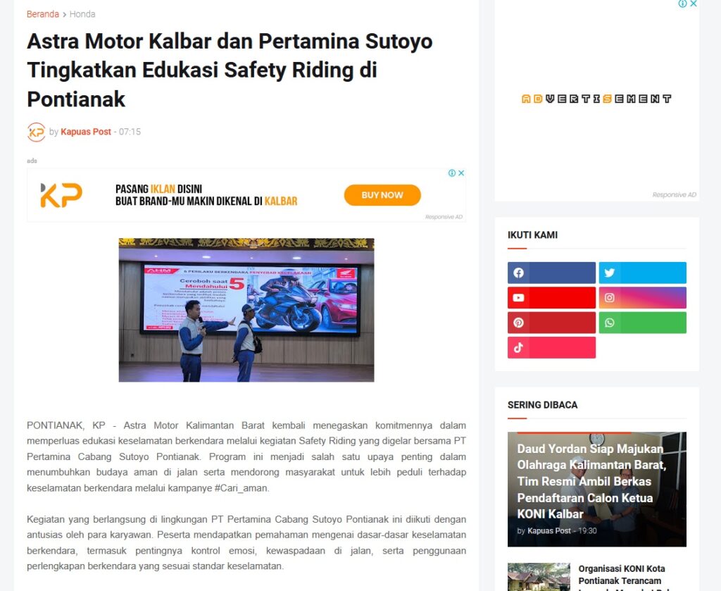 Astra Motor Kalbar dan Pertamina Sutoyo Tingkatkan Edukasi Safety Riding di Pontianak by Muhammad Arif 28 November 2025 in Silahkan kunjungi https://www.kapuaspost.web.id/2025/11/astra-motor-kalbar-dan-pertamina-sutoyo_28.html. Tags: astra Astra Motor kalbar Astra Motor Pontianak astramotor honda kalbar pontianak sepeda motor You Might Like Regional Public Launching New ADV160 The SUV Pride Grand Launching New PCX 160 Truly Exceptional! Tetap hati-hati ya bro sist berkendara saat hujan.