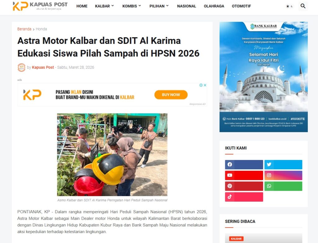 Astra Motor Kalbar dan SDIT Al Karima Edukasi Siswa Pilah Sampah di HPSN 2026 by Muhammad Arif 28 Maret 2026 in Silahkan kunjungi https://www.kapuaspost.web.id/2026/03/astra-motor-kalbar-dan-sdit-al-karima_29.html. Tags: astra Astra Motor kalbar Astra Motor Pontianak astramotor honda kalbar pontianak sepeda motor You Might Like Regional Public Launching New ADV160 The SUV Pride Grand Launching New PCX 160 Truly Exceptional! Tetap hati-hati ya bro sist berkendara saat hujan.