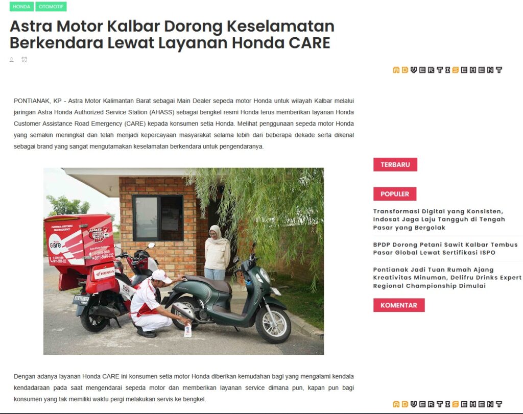 Astra Motor Kalbar Dorong Keselamatan Berkendara Lewat Layanan Honda CARE by Muhammad Arif 20 Agustus 2025 in Silahkan kunjungi https://www.kapuaspost.web.id/2025/08/astra-motor-kalbar-dorong-keselamatan.html. Tags: astra Astra Motor kalbar Astra Motor Pontianak astramotor honda kalbar pontianak sepeda motor You Might Like Regional Public Launching New ADV160 The SUV Pride Grand Launching New PCX 160 Truly Exceptional! Tetap hati-hati ya bro sist berkendara saat hujan.