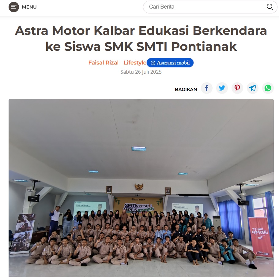 Astra Motor Kalbar Edukasi Berkendara ke Siswa SMK SMTI Pontianak by Dodi Dodi 26 Juli 2025 in Silahkan kunjungi https://harianberkat.com/2025/07/26/astra-motor-kalbar-edukasi-berkendara-ke-siswa-smk-smti-pontianak/. You Might Like Regional Public Launching New ADV160 The SUV Pride Grand Launching New PCX 160 Truly Exceptional! Tetap hati-hati ya bro sist berkendara saat hujan.