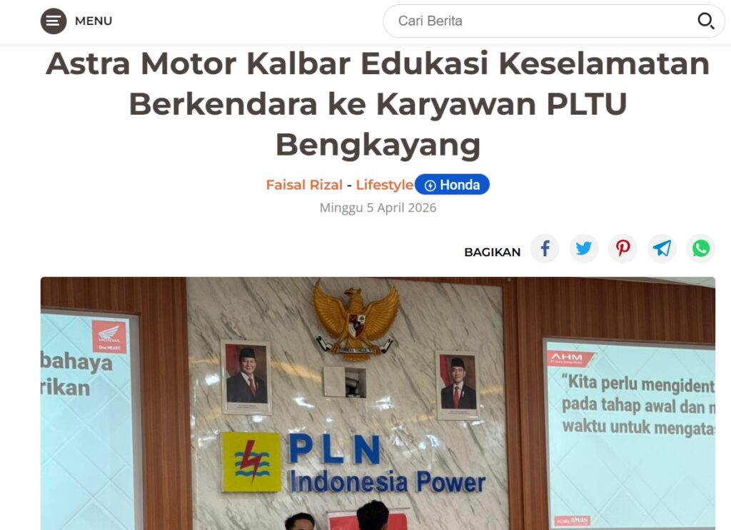 Astra Motor Kalbar Edukasi Keselamatan Berkendara ke Karyawan PLTU Bengkayang by Dodi Dodi 5 April 2026 in Silahkan kunjungi https://harianberkat.com/2026/04/05/astra-motor-kalbar-edukasi-keselamatan-berkendara-ke-karyawan-pltu-bengkayang/. You Might Like Regional Public Launching New ADV160 The SUV Pride Grand Launching New PCX 160 Truly Exceptional! Tetap hati-hati ya bro sist berkendara saat hujan.