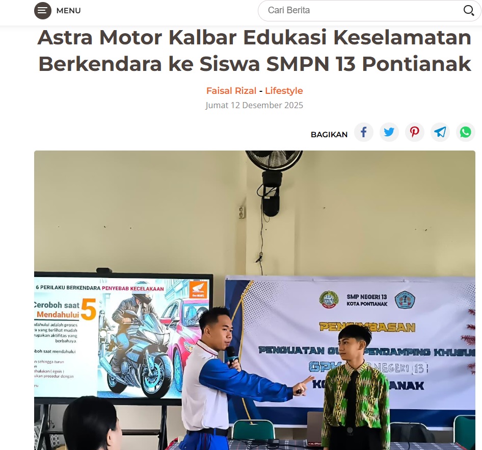 Astra Motor Kalbar Edukasi Keselamatan Berkendara ke Siswa SMPN 13 Pontianak by Dodi Dodi 12 Desember 2025 in Silahkan kunjungi https://harianberkat.com/2025/12/12/astra-motor-kalbar-edukasi-keselamatan-berkendara-ke-siswa-smpn-13-pontianak/. You Might Like Regional Public Launching New ADV160 The SUV Pride Grand Launching New PCX 160 Truly Exceptional! Tetap hati-hati ya bro sist berkendara saat hujan.