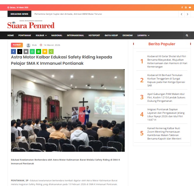 Astra Motor Kalbar Edukasi Safety Riding kepada Pelajar SMA K Immanuel Pontianak by masmul 14 Maret 2026 in Silahkan kunjungi https://www.suarapemredkalbar.com/read/potret/14032026/astra-motor-kalbar-edukasi-safety-riding-kepada-pelajar-sma-k-immanuel-pontianak. You Might Like Regional Public Launching New ADV160 The SUV Pride Grand Launching New PCX 160 Truly Exceptional! Tetap hati-hati ya bro sist berkendara saat hujan.