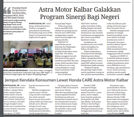 Astra Motor Kalbar Galakkan Program Sinergi Bagi Negeri, Kampanye Keselamatan Berkendara bagi Pelajar SMP Negeri 13 Pontianak Jaga Nyawa di Jalan Raya by masmul 19 Desember 2025 in Silahkan buka . You Might Like Regional Public Launching New ADV160 The SUV Pride Grand Launching New PCX 160 Truly Exceptional! Tetap hati-hati ya bro sist berkendara saat hujan.
