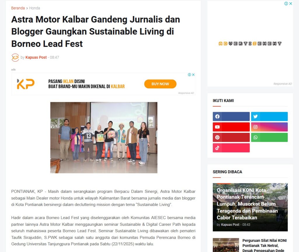 Astra Motor Kalbar Gandeng Jurnalis dan Blogger Gaungkan Sustainable Living di Borneo Lead Fest by Muhammad Arif 15 Desember 2025 in Silahkan kunjungi https://www.kapuaspost.web.id/2025/12/astra-motor-kalbar-gandeng-jurnalis-dan.html. Tags: astra Astra Motor kalbar Astra Motor Pontianak astramotor honda kalbar pontianak sepeda motor You Might Like Regional Public Launching New ADV160 The SUV Pride Grand Launching New PCX 160 Truly Exceptional! Tetap hati-hati ya bro sist berkendara saat hujan.