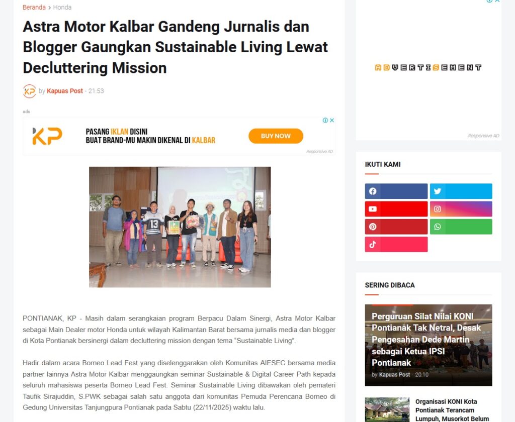 Astra Motor Kalbar Gandeng Jurnalis dan Blogger Gaungkan Sustainable Living Lewat Decluttering Mission by Muhammad Arif 18 Desember 2025 in Silahkan kunjungi https://www.kapuaspost.web.id/2025/12/astra-motor-kalbar-gandeng-jurnalis-dan_18.html. Tags: astra Astra Motor kalbar Astra Motor Pontianak astramotor honda kalbar pontianak sepeda motor You Might Like Regional Public Launching New ADV160 The SUV Pride Grand Launching New PCX 160 Truly Exceptional! Tetap hati-hati ya bro sist berkendara saat hujan.