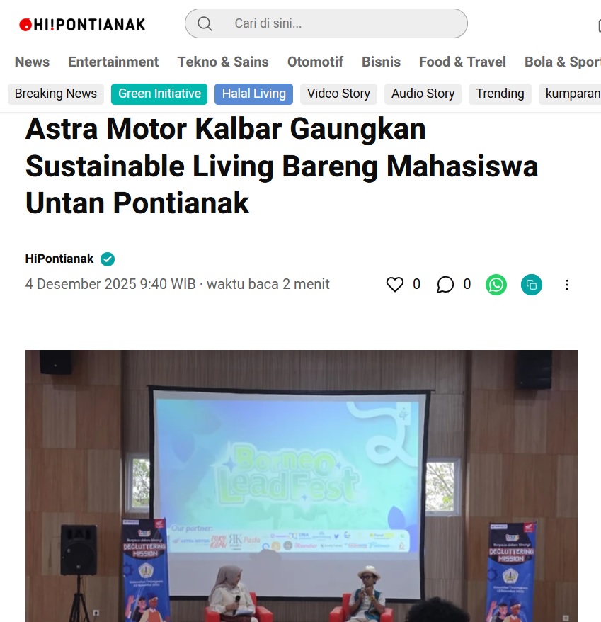 Astra Motor Kalbar Gaungkan Sustainable Living Bareng Mahasiswa Untan Pontianak by Leo Prima 4 Desember 2025 in Silahkan kunjungi https://kumparan.com/hipontianak/26MfcszGldE?utm_source=App&utm_medium=wa&shareID=pDda28UJJFHU. You Might Like Regional Public Launching New ADV160 The SUV Pride Grand Launching New PCX 160 Truly Exceptional! Tetap hati-hati ya bro sist berkendara saat hujan.
