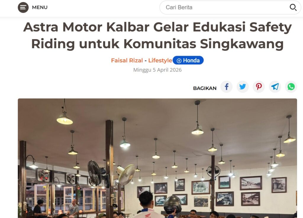 Astra Motor Kalbar Gelar Edukasi Safety Riding untuk Komunitas Singkawang by Dodi Dodi 5 April 2026 in Silahkan kunjungi https://harianberkat.com/2026/04/05/astra-motor-kalbar-gelar-edukasi-safety-riding-untuk-komunitas-singkawang/. You Might Like Regional Public Launching New ADV160 The SUV Pride Grand Launching New PCX 160 Truly Exceptional! Tetap hati-hati ya bro sist berkendara saat hujan.