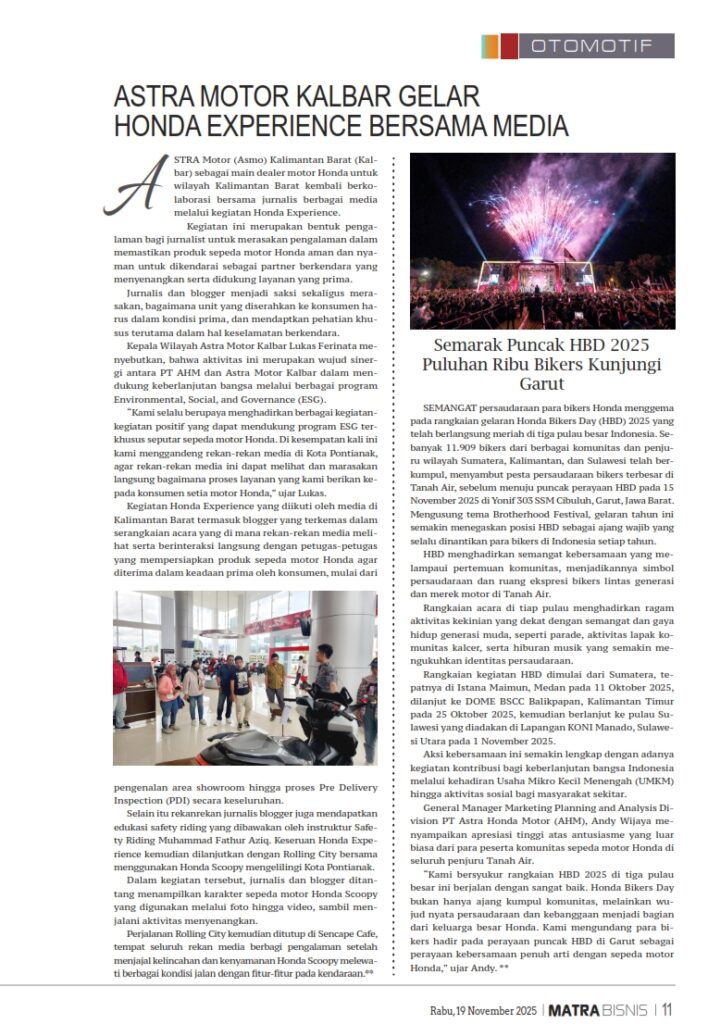 ASTRA MOTOR KALBAR GELAR HONDA EXPERIENCE BERSAMA MEDIA by Sri Yuliantiningsih 19 November 2025 in Silahkan buka . You Might Like Regional Public Launching New ADV160 The SUV Pride Grand Launching New PCX 160 Truly Exceptional! Tetap hati-hati ya bro sist berkendara saat hujan.