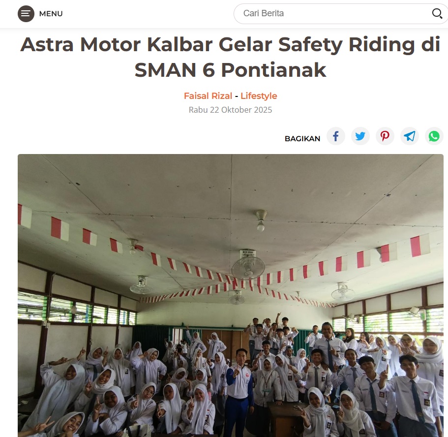 Astra Motor Kalbar Gelar Safety Riding di SMAN 6 Pontianak by Dodi Dodi 22 Oktober 2025 in Silahkan kunjungi https://harianberkat.com/2025/10/22/astra-motor-kalbar-gelar-safety-riding-di-sman-6-pontianak/. You Might Like Regional Public Launching New ADV160 The SUV Pride Grand Launching New PCX 160 Truly Exceptional! Tetap hati-hati ya bro sist berkendara saat hujan.