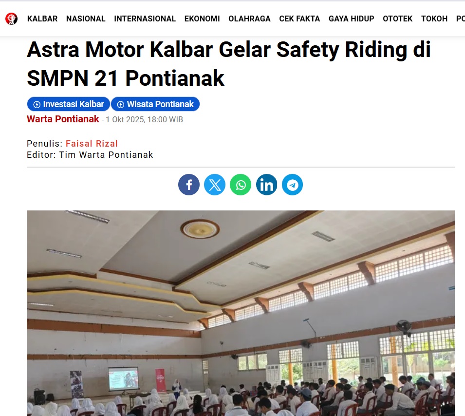 Astra Motor Kalbar Gelar Safety Riding di SMPN 21 Pontianak by Faisal Rizal 2 Oktober 2025 in Silahkan kunjungi https://wartapontianak.pikiran-rakyat.com/gaya-hidup/pr-1179686004/astra-motor-kalbar-gelar-safety-riding-di-smpn-21-pontianak. You Might Like Regional Public Launching New ADV160 The SUV Pride Grand Launching New PCX 160 Truly Exceptional! Tetap hati-hati ya bro sist berkendara saat hujan.