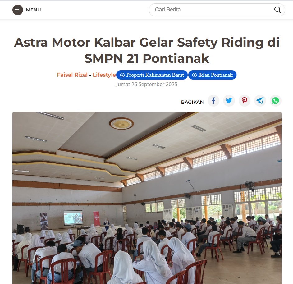 Astra Motor Kalbar Gelar Safety Riding di SMPN 21 Pontianak by Dodi Dodi 26 September 2025 in Silahkan kunjungi https://harianberkat.com/2025/09/26/astra-motor-kalbar-gelar-safety-riding-di-smpn-21-pontianak/. You Might Like Regional Public Launching New ADV160 The SUV Pride Grand Launching New PCX 160 Truly Exceptional! Tetap hati-hati ya bro sist berkendara saat hujan.