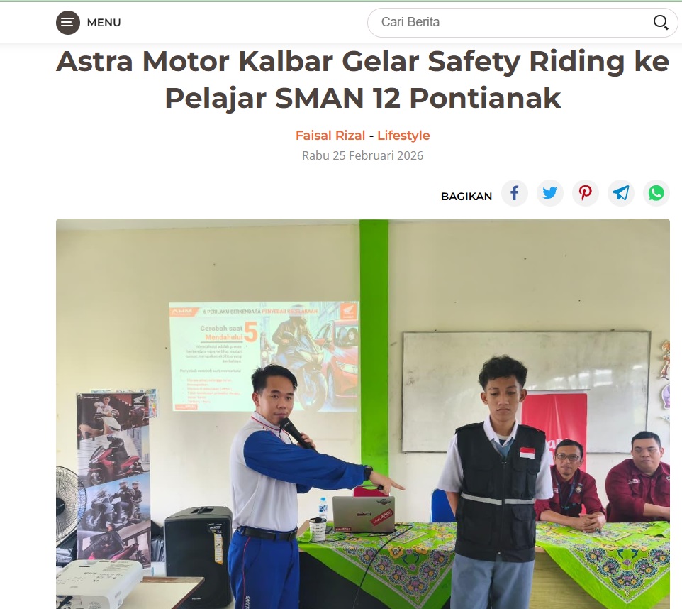 Astra Motor Kalbar Gelar Safety Riding ke Pelajar SMAN 12 Pontianak by Dodi Dodi 25 Februari 2026 in Silahkan kunjungi https://harianberkat.com/2026/02/25/astra-motor-kalbar-gelar-safety-riding-ke-pelajar-sman-12-pontianak/. You Might Like Regional Public Launching New ADV160 The SUV Pride Grand Launching New PCX 160 Truly Exceptional! Tetap hati-hati ya bro sist berkendara saat hujan.