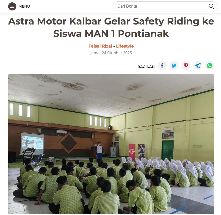 Astra Motor Kalbar Gelar Safety Riding ke Siswa MAN 1 Pontianak by Dodi Dodi 24 Oktober 2025 in Silahkan kunjungi https://harianberkat.com/2025/10/24/astra-motor-kalbar-gelar-safety-riding-ke-siswa-man-1-pontianak/. You Might Like Regional Public Launching New ADV160 The SUV Pride Grand Launching New PCX 160 Truly Exceptional! Tetap hati-hati ya bro sist berkendara saat hujan.