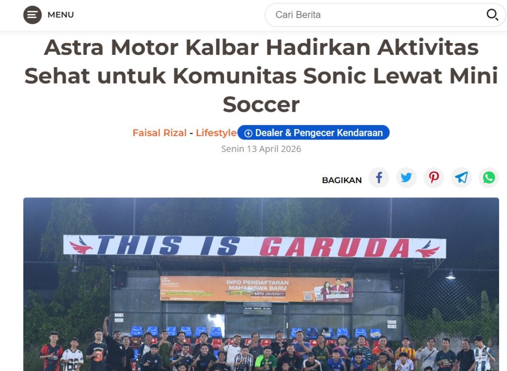 Astra Motor Kalbar Hadirkan Aktivitas Sehat untuk Komunitas Sonic Lewat Mini Soccer by Dodi Dodi 13 April 2026 in Silahkan kunjungi https://harianberkat.com/2026/04/13/astra-motor-kalbar-hadirkan-aktivitas-sehat-untuk-komunitas-sonic-lewat-mini-soccer/. You Might Like Regional Public Launching New ADV160 The SUV Pride Grand Launching New PCX 160 Truly Exceptional! Tetap hati-hati ya bro sist berkendara saat hujan.