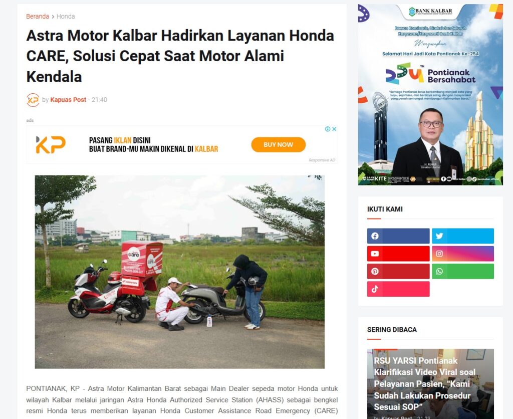 Astra Motor Kalbar Hadirkan Layanan Honda CARE, Solusi Cepat Saat Motor Alami Kendala by Muhammad Arif 14 Oktober 2025 in Silahkan kunjungi https://www.kapuaspost.web.id/2025/10/astra-motor-kalbar-hadirkan-layanan_23.html. Tags: astra Astra Motor kalbar Astra Motor Pontianak astramotor honda kalbar pontianak sepeda motor You Might Like Regional Public Launching New ADV160 The SUV Pride Grand Launching New PCX 160 Truly Exceptional! Tetap hati-hati ya bro sist berkendara saat hujan.