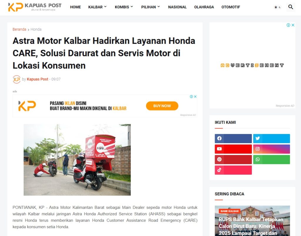 Astra Motor Kalbar Hadirkan Layanan Honda CARE, Solusi Darurat dan Servis Motor di Lokasi Konsumen by Muhammad Arif 8 Februari 2026 in Silahkan kunjungi https://www.kapuaspost.web.id/2026/02/astra-motor-kalbar-hadirkan-layanan_16.html. Tags: astra Astra Motor kalbar Astra Motor Pontianak astramotor honda kalbar pontianak sepeda motor You Might Like Regional Public Launching New ADV160 The SUV Pride Grand Launching New PCX 160 Truly Exceptional! Tetap hati-hati ya bro sist berkendara saat hujan.