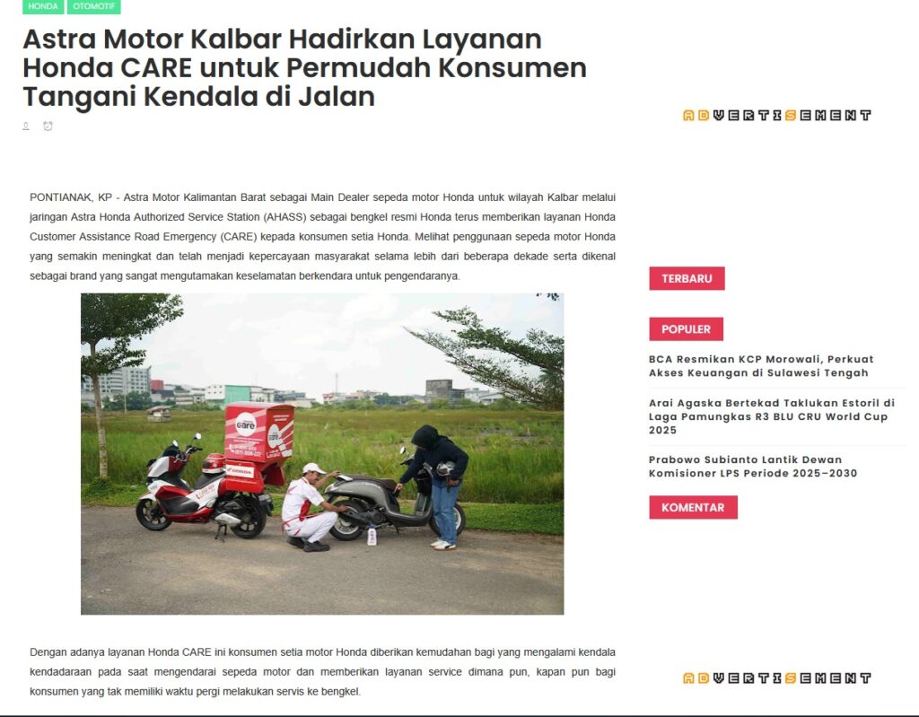 Astra Motor Kalbar Hadirkan Layanan Honda CARE untuk Permudah Konsumen Tangani Kendala di Jalan by Muhammad Arif 8 Oktober 2025 in Silahkan kunjungi https://www.kapuaspost.web.id/2025/10/astra-motor-kalbar-hadirkan-layanan_14.html. Tags: astra Astra Motor kalbar Astra Motor Pontianak astramotor honda kalbar pontianak sepeda motor You Might Like Regional Public Launching New ADV160 The SUV Pride Grand Launching New PCX 160 Truly Exceptional! Tetap hati-hati ya bro sist berkendara saat hujan.