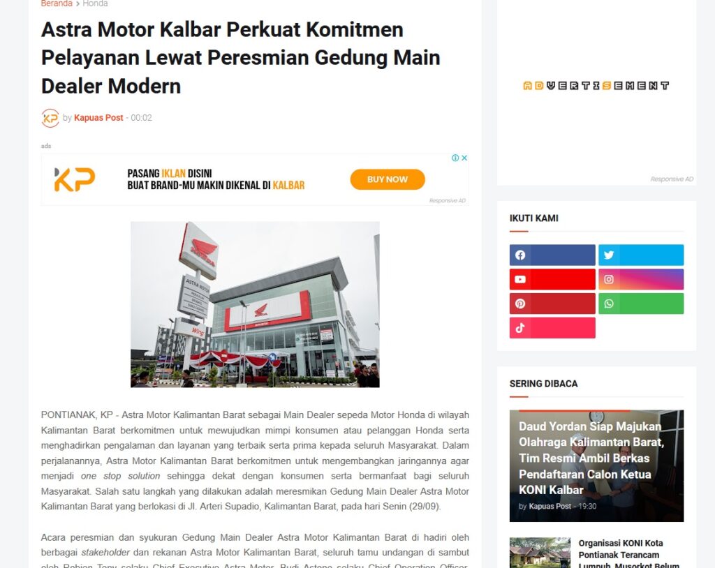 Astra Motor Kalbar Perkuat Komitmen Pelayanan Lewat Peresmian Gedung Main Dealer Modern by Muhammad Arif 22 November 2025 in Silahkan kunjungi https://www.kapuaspost.web.id/2025/11/astra-motor-kalbar-perkuat-komitmen.html. Tags: astra Astra Motor kalbar Astra Motor Pontianak astramotor honda kalbar pontianak sepeda motor You Might Like Regional Public Launching New ADV160 The SUV Pride Grand Launching New PCX 160 Truly Exceptional! Tetap hati-hati ya bro sist berkendara saat hujan.