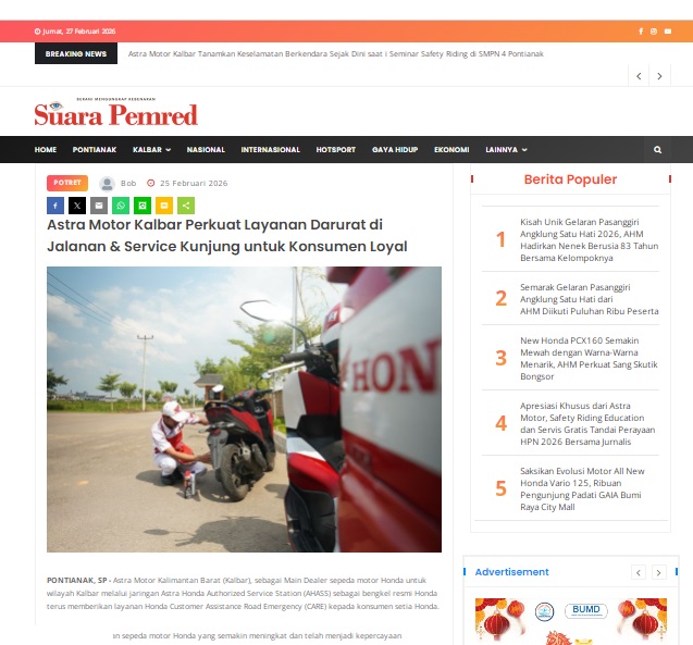 Astra Motor Kalbar Perkuat Layanan Darurat di Jalanan & Service Kunjung untuk Konsumen Loyal by masmul 25 Februari 2026 in Silahkan kunjungi https://www.suarapemredkalbar.com/read/potret/25022026/astra-motor-kalbar-perkuat-layanan-darurat-di-jalanan-service-kunjung-untuk-konsumen-loyal. You Might Like Regional Public Launching New ADV160 The SUV Pride Grand Launching New PCX 160 Truly Exceptional! Tetap hati-hati ya bro sist berkendara saat hujan.
