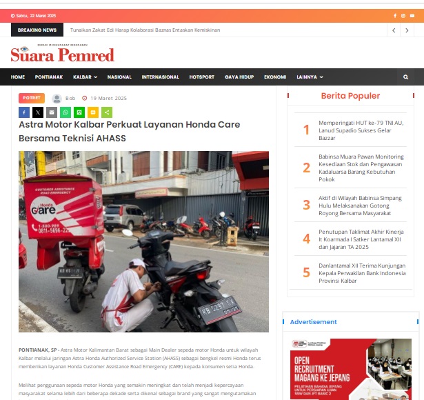 Astra Motor Kalbar Perkuat Layanan Honda Care Bersama Teknisi AHASS by masmul 19 Maret 2025 in Silahkan kunjungi https://www.suarapemredkalbar.com/read/potret/19032025/astra-motor-kalbar-perkuat-layanan-honda-care-bersama-teknisi-ahass. You Might Like Regional Public Launching New ADV160 The SUV Pride Grand Launching New PCX 160 Truly Exceptional! Tetap hati-hati ya bro sist berkendara saat hujan.