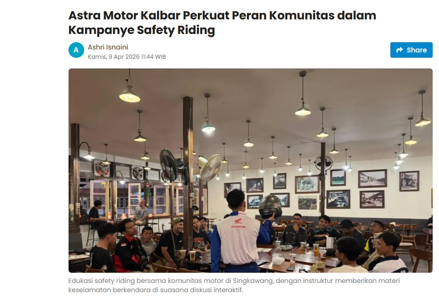 Astra Motor Kalbar Perkuat Peran Komunitas dalam Kampanye Safety Riding by Aristono Edi Kiswantoro 9 April 2026 in Silahkan kunjungi https://pontianakpost.jawapos.com/otomotif/2604090035/astra-motor-kalbar-perkuat-peran-komunitas-dalam-kampanye-safety-riding. You Might Like Regional Public Launching New ADV160 The SUV Pride Grand Launching New PCX 160 Truly Exceptional! Tetap hati-hati ya bro sist berkendara saat hujan.