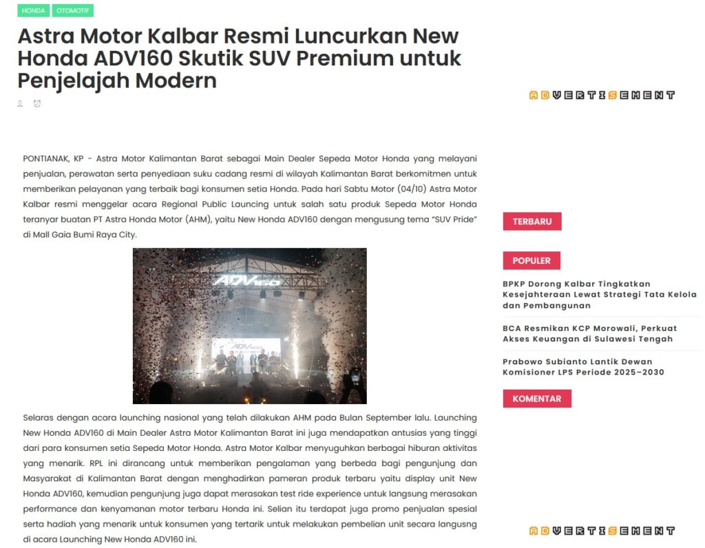 Astra Motor Kalbar Resmi Luncurkan New Honda ADV160 Skutik SUV Premium untuk Penjelajah Modern by Muhammad Arif 10 Oktober 2025 in Silahkan kunjungi https://www.kapuaspost.web.id/2025/10/astra-motor-kalbar-resmi-luncurkan-new_13.html. Tags: astra Astra Motor kalbar Astra Motor Pontianak astramotor honda kalbar pontianak sepeda motor You Might Like Regional Public Launching New ADV160 The SUV Pride Grand Launching New PCX 160 Truly Exceptional! Tetap hati-hati ya bro sist berkendara saat hujan.