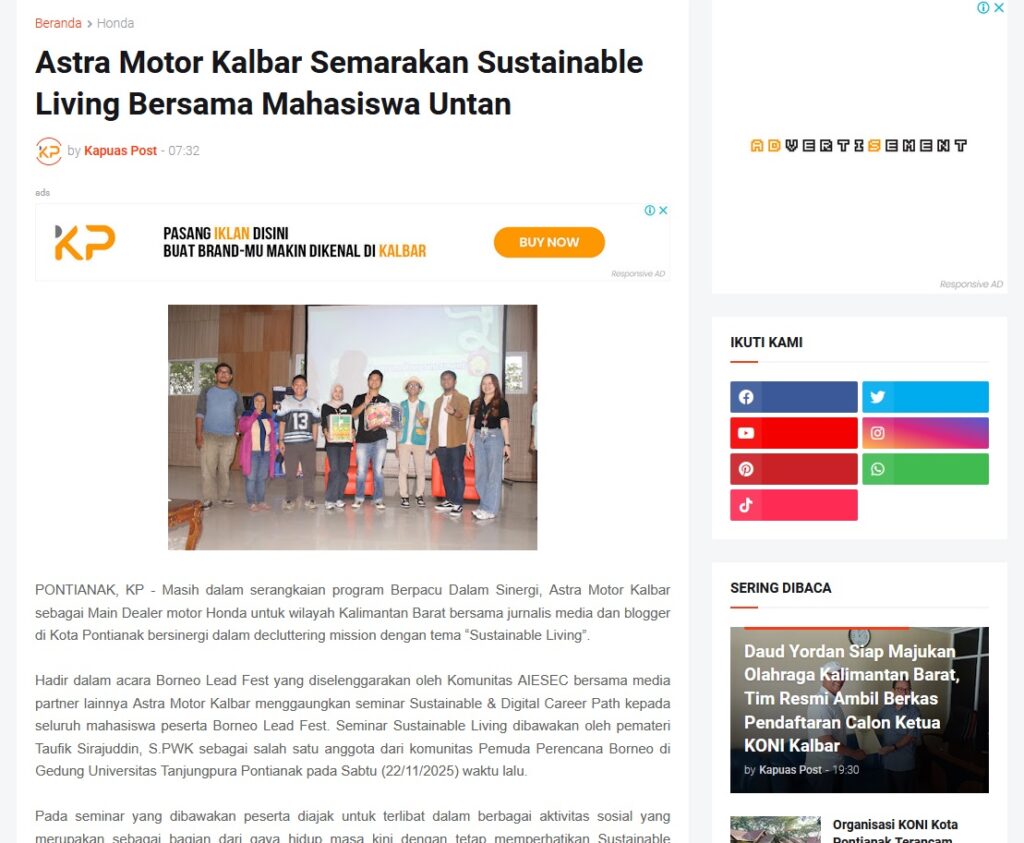 Astra Motor Kalbar Semarakan Sustainable Living Bersama Mahasiswa Untan