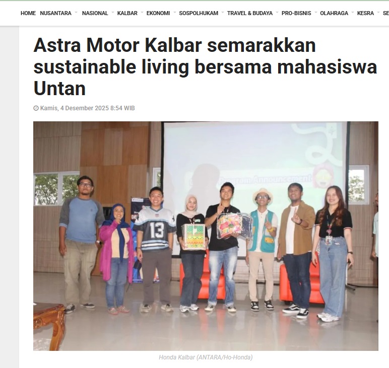 Astra Motor Kalbar semarakkan sustainable living bersama mahasiswa Untan by Dedi 4 Desember 2025 in Silahkan kunjungi https://kalbar.antaranews.com/berita/676462/astra-motor-kalbar-semarakkan-sustainable-living-bersama-mahasiswa-untan. You Might Like Regional Public Launching New ADV160 The SUV Pride Grand Launching New PCX 160 Truly Exceptional! Tetap hati-hati ya bro sist berkendara saat hujan.