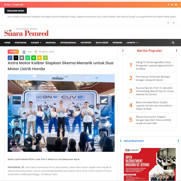 Astra Motor Kalbar Siapkan Skema Menarik untuk Dua Motor Listrik Honda by masmul 18 Maret 2025 in Silahkan kunjungi https://www.suarapemredkalbar.com/read/potret/18032025/astra-motor-kalbar-siapkan-skema-menarik-untuk-dua-motor-listrik-honda. You Might Like Regional Public Launching New ADV160 The SUV Pride Grand Launching New PCX 160 Truly Exceptional! Tetap hati-hati ya bro sist berkendara saat hujan.